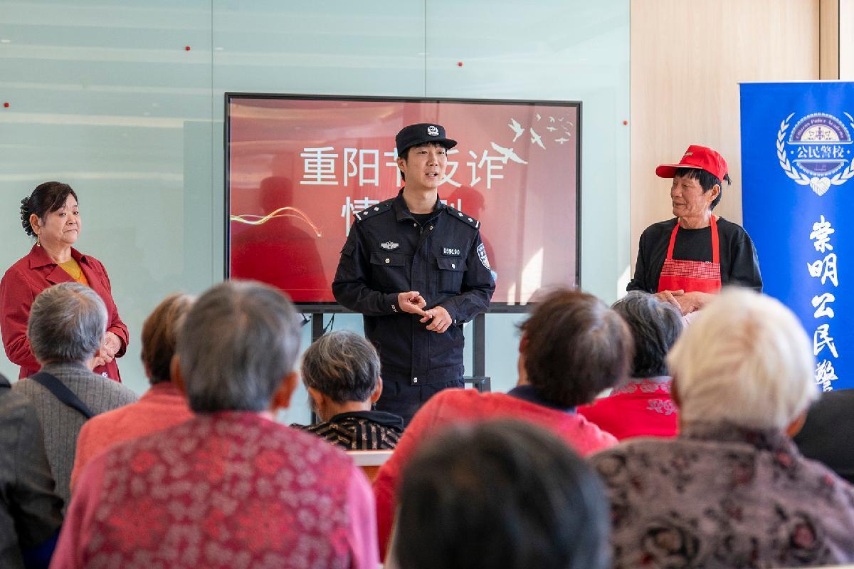 10月29日,上海市公安局崇明分局港西派出所组织民警来到辖区综合为老服务中心,开展重阳节慰问和反诈宣传。