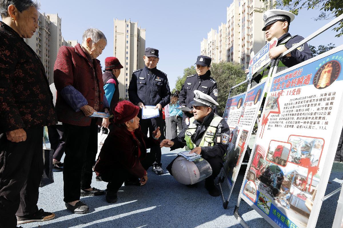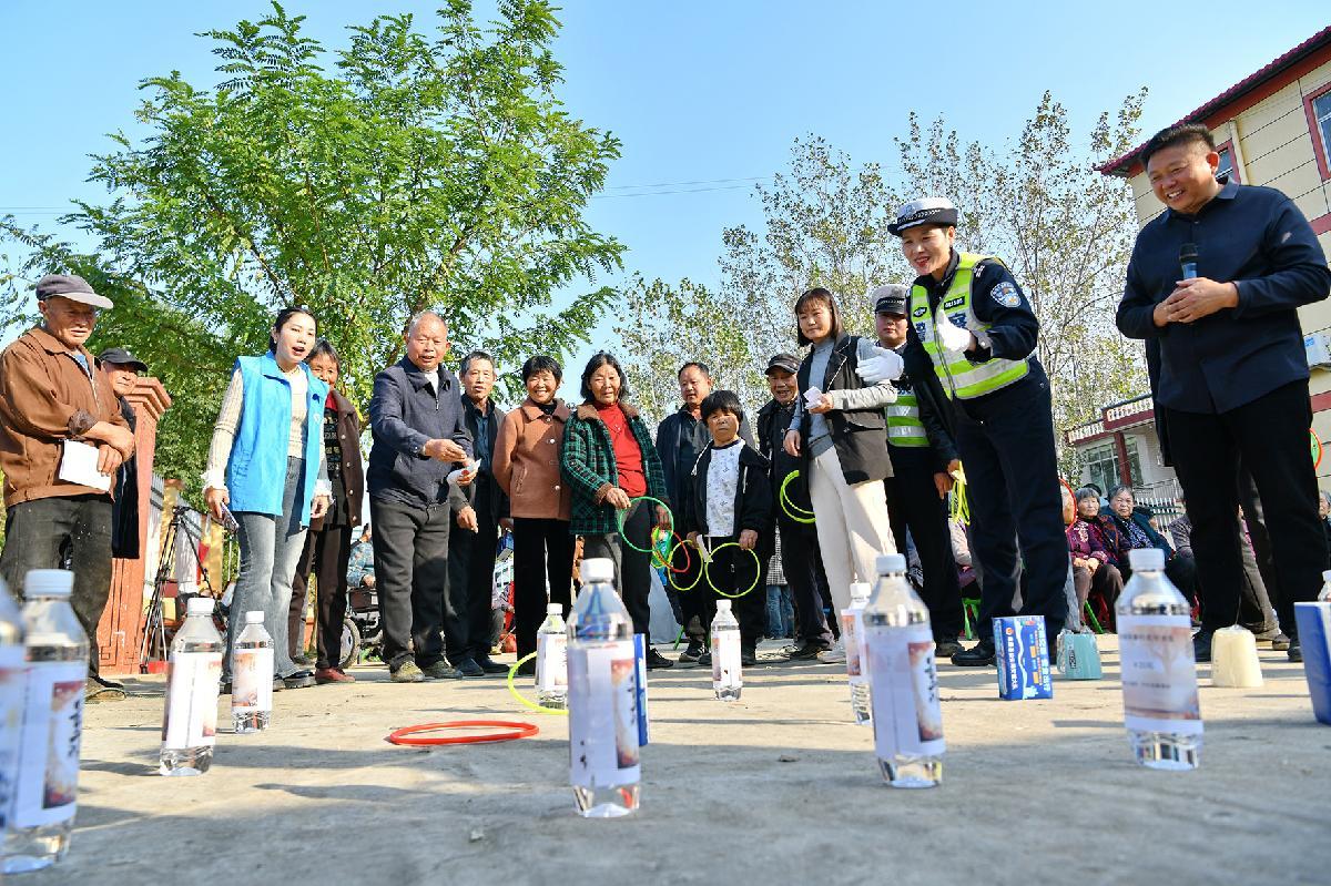 10月28日,安徽省阜南县公安局交管大队民警辅警走进黄岗镇耿寨村开展“重阳节送交通安全知识”活动。