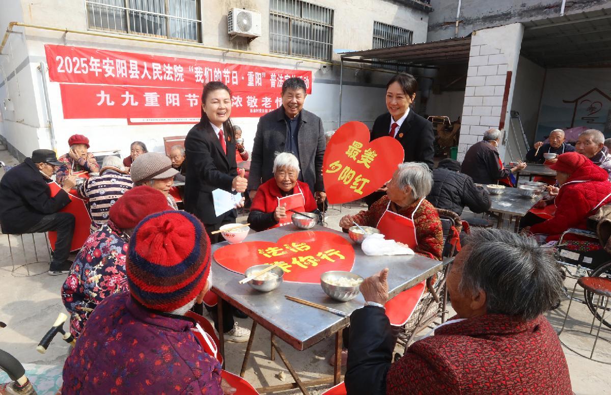 10月29日,河南省安阳县人民法院组织干警深入辖区吕村镇西吕村开展“我们的节日·重阳”普法宣传。