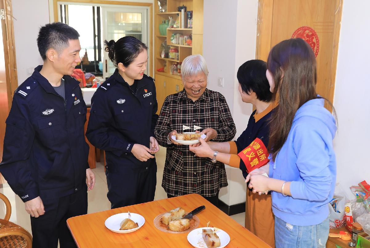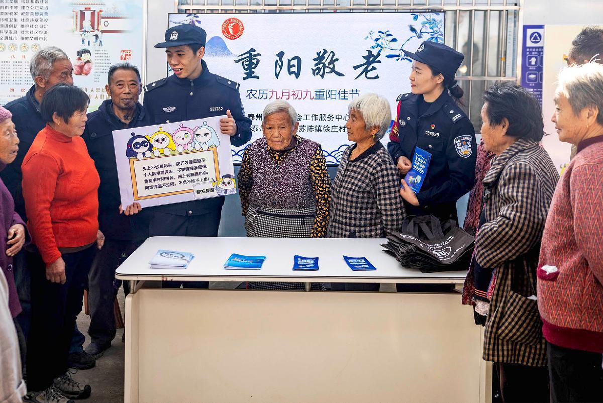 10月28日,浙江省台州市公安局黄岩分局民警、义警携手社区工作人员走进辖区独居老人家中,送上重阳糕及老年人防诈手册。