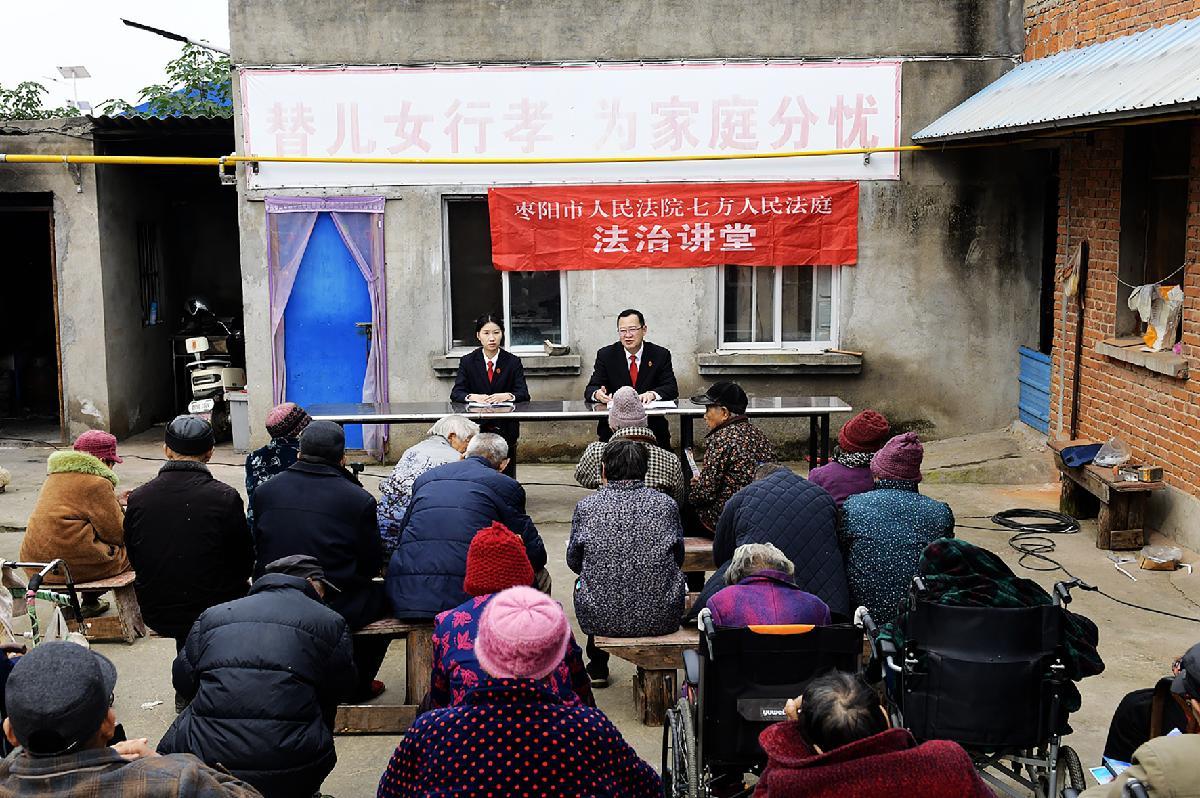 10月29日,湖北省枣阳市人民法院七方法庭组织干警走进七方镇益家人敬老院,开展“法治讲堂”普法宣传。