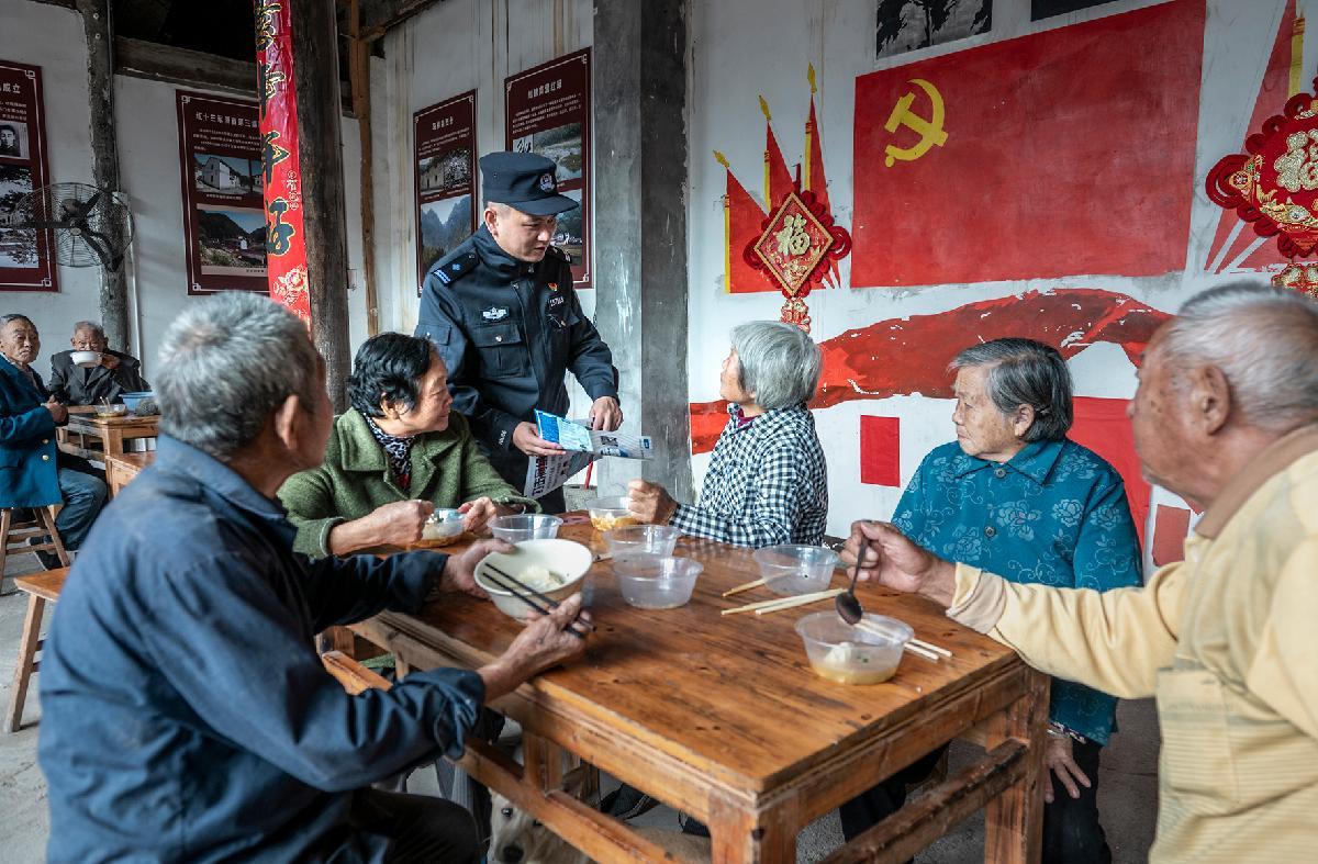 10月29日,浙江省武义县公安局新宅派出所来到辖区南塘头村,开展走访助老活动,并向老人进行防范养老诈骗知识宣传。