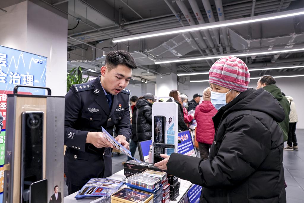 12月12日,北京市公安局人口基层总队会同丰台公安分局在右安门京印国际中心设主会场,拉开宣传活动序幕。现场,丰台公安分局人口基层大队民警围绕出租房屋治安管理,从出租登记、举报奖励、违法处罚等角度进行了政策宣讲;反诈中心民警对当前多发新发的电诈类型和防范要点,进行了重点提示;治安支队民警结合《北京市人民政府关于公布无人驾驶航空器管制空域范围的通告》、入住旅店实名登记等相关内容,与现场群众进行互动问答;右安门派出所在通报辖区治安形势的同时,社区民警着重介绍冬季入室盗窃案件发案规律特点,提示广大群众通过更换“C级锁”等方式,强化防范应对能力。针对冬季防火以及群众徒步登山安全等注意事项,警方邀请丰台消防救援支队消防员到场开展安全宣讲。