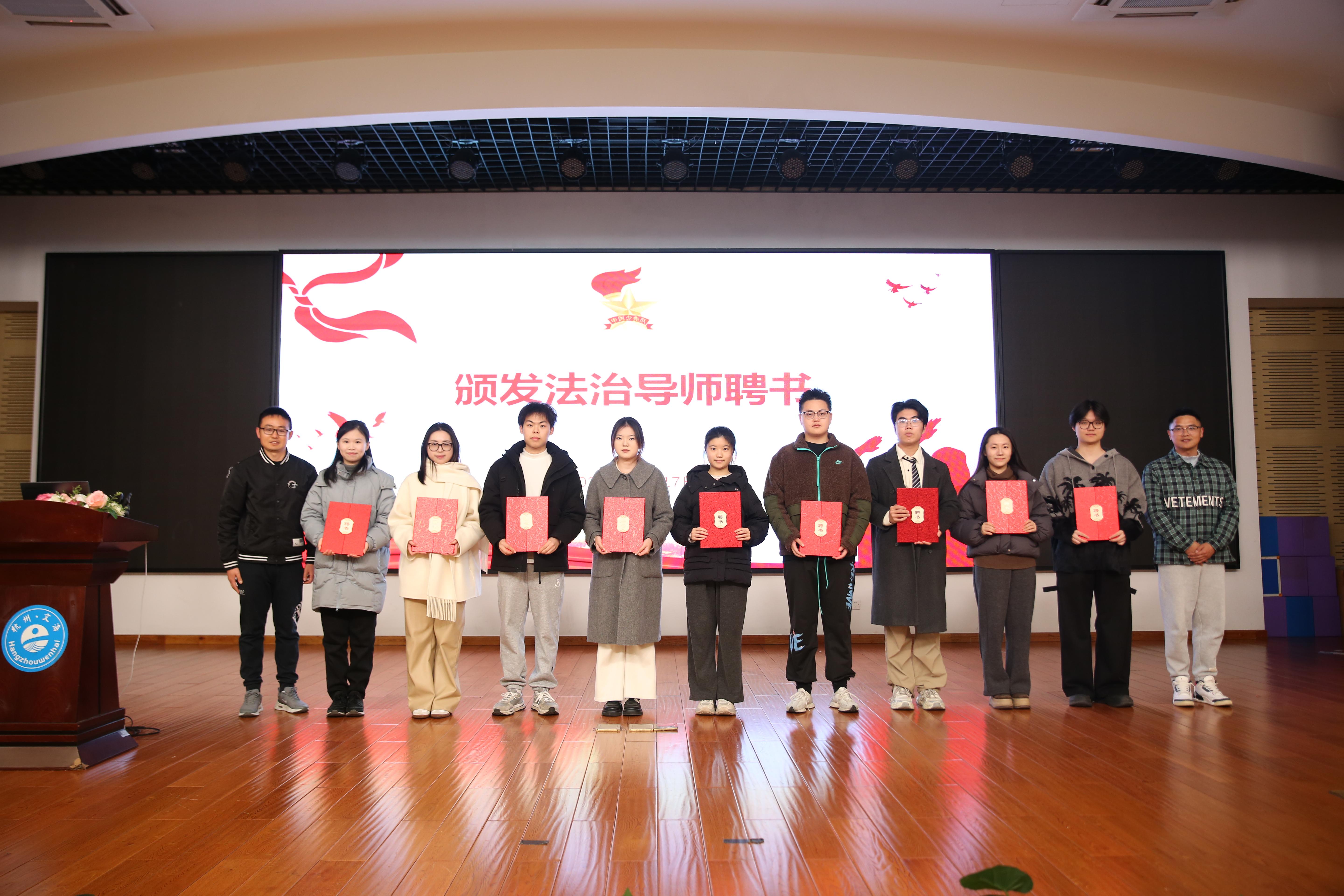 “有请大学生导师上台!”文海(文清)小学德育处主任为浙江工商大学卓越法学班的导师们颁发聘书,红领巾队员们的欢呼掌声瞬间响起。这份聘书藏着陪伴成长的责任。未来一年,导师们将定期走进校园,陪伴队员探索法治世界,做少年成长路上的法治守护者。