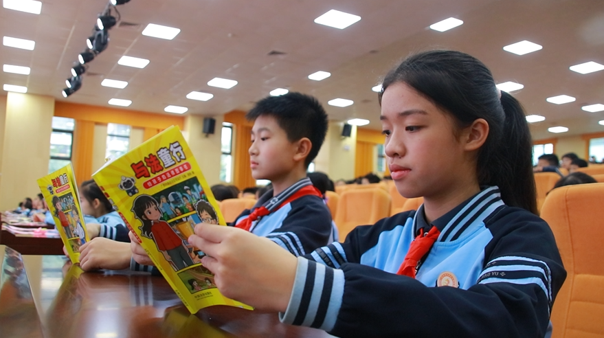 活动伊始,自治区司法厅向文骅小学师生赠送原创普法读物《与法童行——给孩子的法律故事书》。该书由自治区司法厅主编,中国法治出版社出版,以儿童视角锚定普法切入点,将抽象法律条文转化为具象叙事,搭配动漫插图与校园典型案例,通过“以案释法”“情景模拟”等多元形式,实现法律知识的“可视化、场景化、实践化”传递。