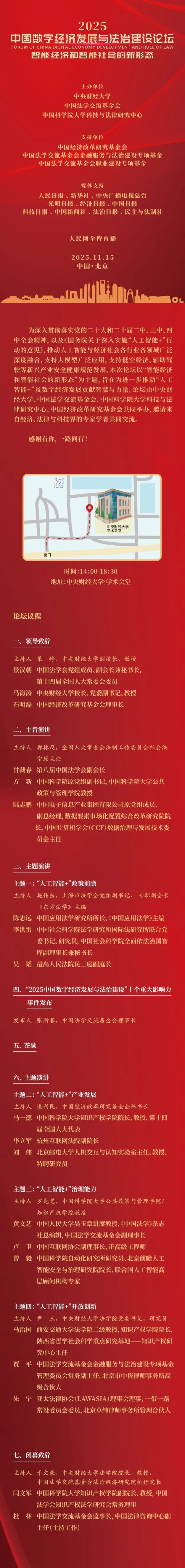 本次论坛主要为定向邀请,面向社会公开少量名额。如感兴趣,可私信发送“姓名+单位/职务+联系方式”至“中国法学交流基金会”微信公众号后台,主办方将根据申请情况发送《邀请函》。