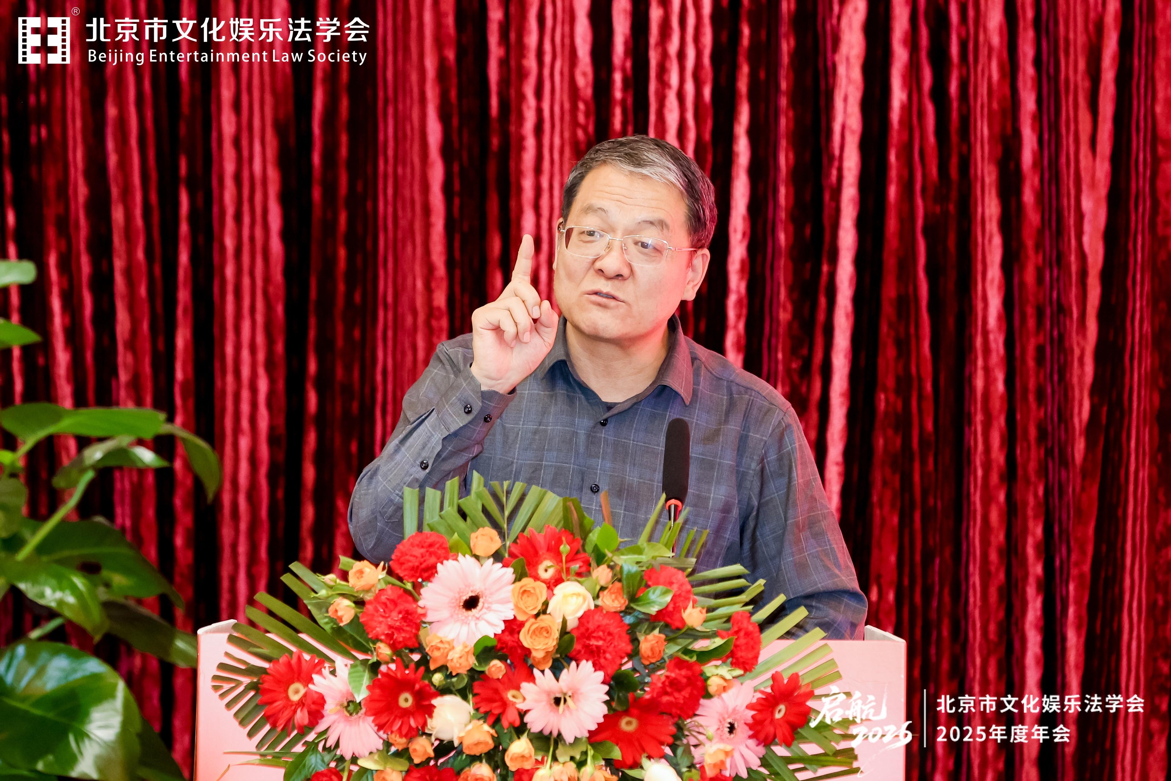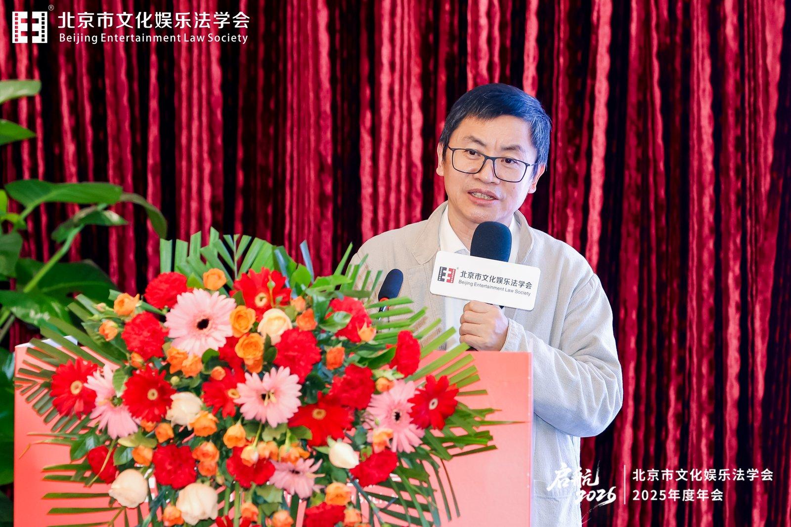 北京大学法学院教授、北京市文化娱乐法学会会长易继明发表了题为“网络文娱法治建设问题”的主旨发言。他从“海棠文学城”事件、“网络游戏变身‘开设赌场’”案、“《红色娘子军》著作权纠纷”案等实际案例出发,强调在新技术环境下,法治建设应贯彻习近平法治思想、习近平文化思想及习近平总书记关于知识产权工作的重要论述,既要回应产业现实,也要把握法治的方法和制度边界。
