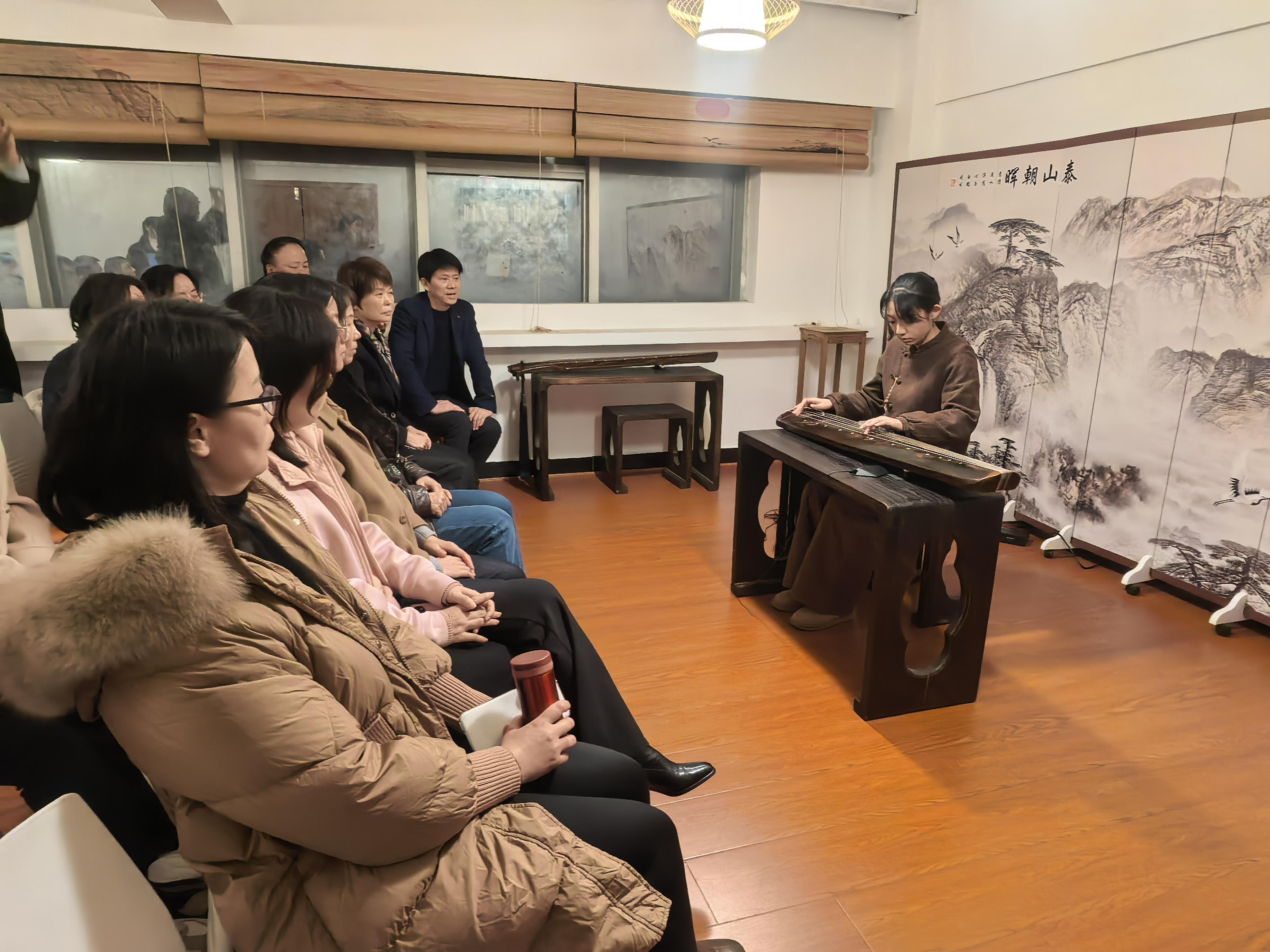 “理论”浸润结束后,古琴老师端坐琴前,指尖轻扬。《沧海一声笑》《秋风词》《流水》……一曲曲经典琴曲在指尖流淌,或雄浑开阔,或婉约细腻,将古琴独有的艺术魅力展现得淋漓尽致。学员们凝神聆听,沉醉在这空灵悠远的意境之中。