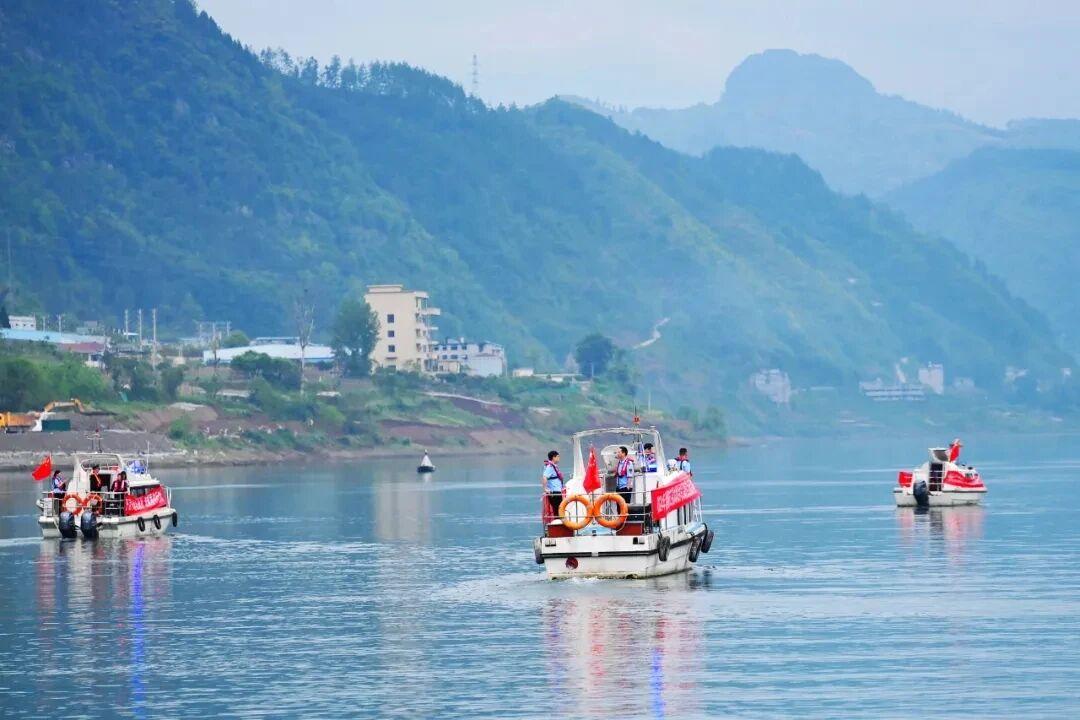 图为2024年4月17日至19日,铜仁市沿河县公安局与重庆市彭水县、酉阳县相关部门开展联合执法巡航活动。