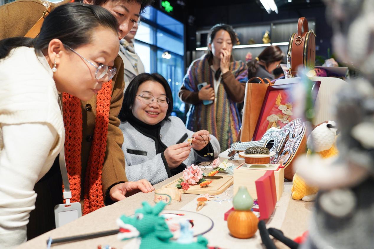 北京编织、城口大漆、善琏湖笔、宜兴紫砂……一件件手工艺品展示了残疾妇女精湛的手工技艺,也承载着她们对梦想的坚守和对美好生活的追求。在互动体验区,不少观众沉浸式体验绒线编织、紫砂壶制作等工艺过程,在一针一线、一捏一塑间感受传统技艺的文化底蕴。