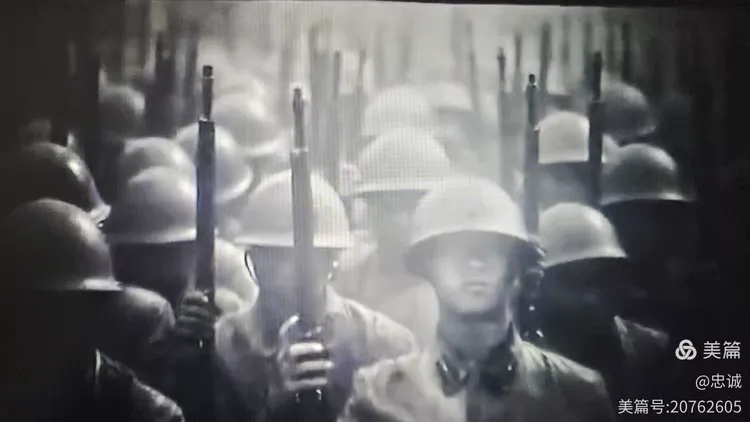 镜头伸展处的陈列馆出口隧道由暗到亮,前方是一片光明晴朗的天空,一队中国军人整齐地向着太阳走去,艺术地留给观众无限的遐思。