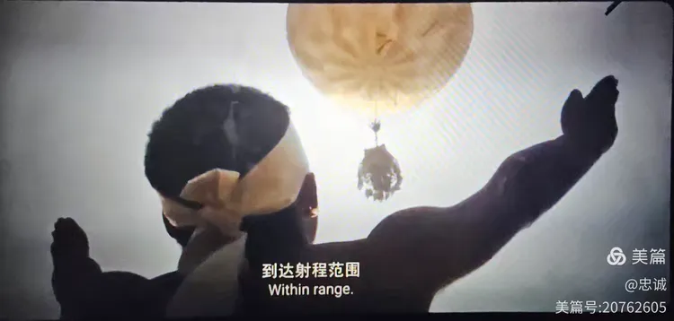 形似膏药旗标志状的圆形气球,与片头照应着在片尾出现,是在日本军人拿着红白旗引导着飘向“安达野外特别效应试验场”的。