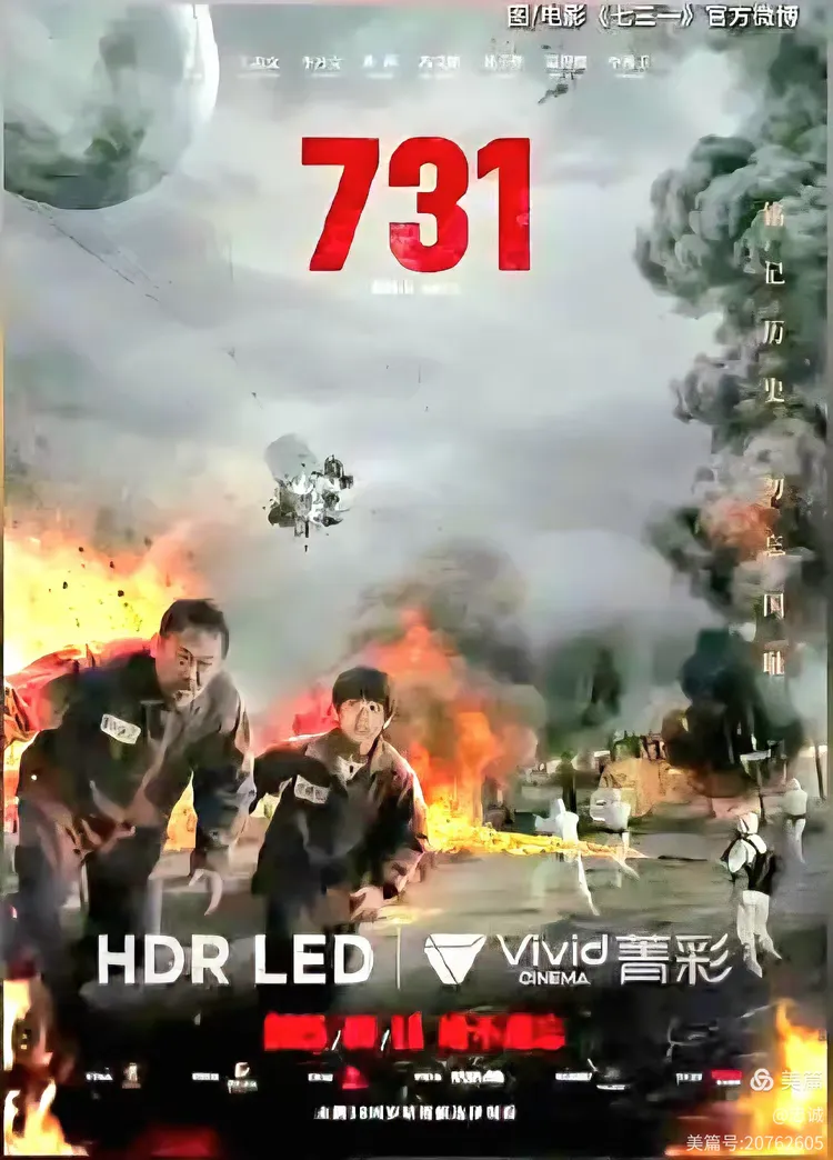 在中国人民抗日战争暨世界反法西斯战争胜利80周年期间,全国公开上映的彩色故事影片《731》,讲述了1945年抗战胜利前夕,侵华日军第七三一部队在哈尔滨平房区以“给水防疫”为名,秘密进行惨无人道的细菌战研究,大肆抓捕包括中国、俄罗斯、朝鲜等国家至少3000名民众进行活体实验,妄图以此扭转侵略战争败局的故事。