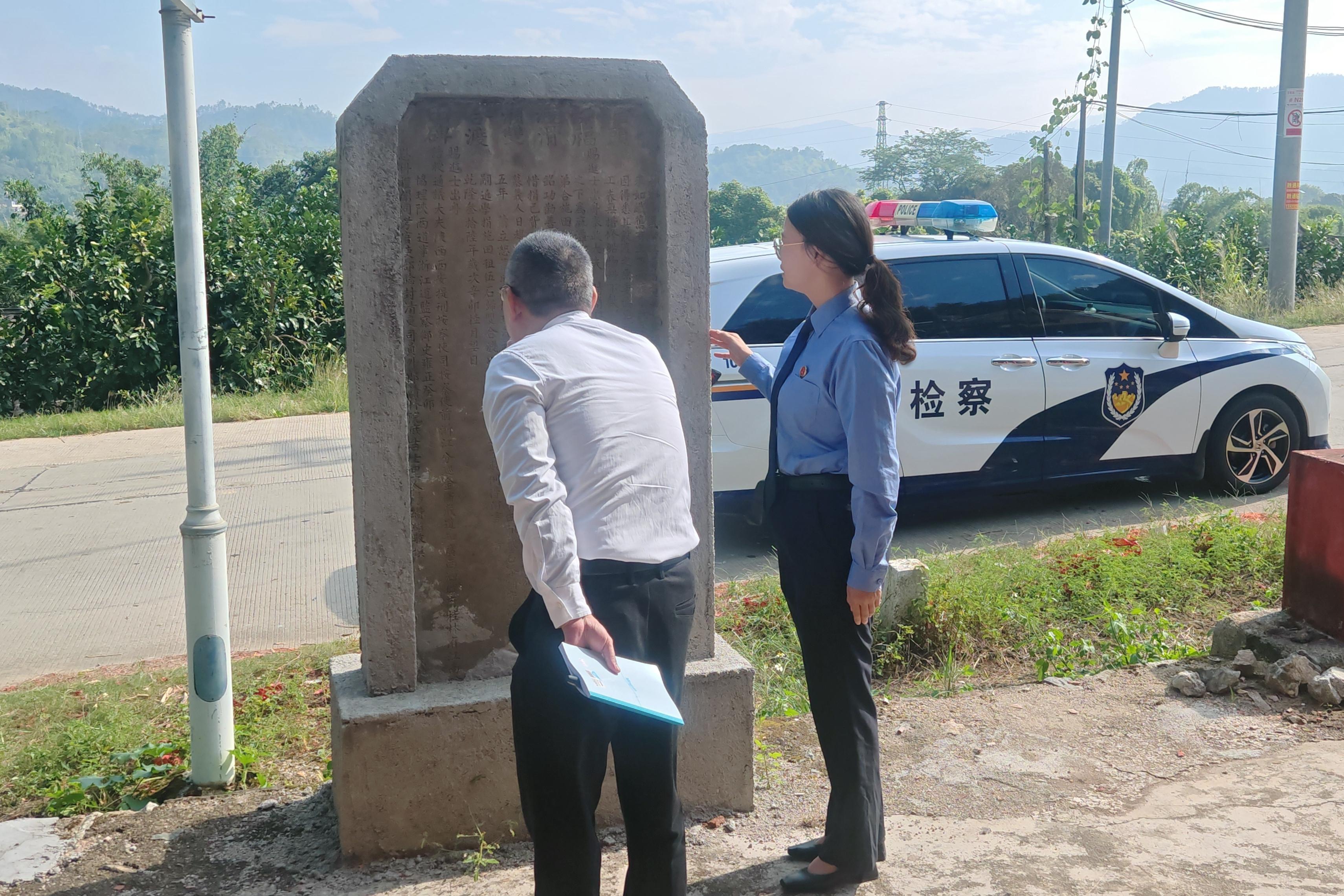 4月10日,大埔县人民检察院向县文广旅体局及属地镇政府制发检察建议,明确履职要求与整改时限,推动形成监管合力。两个月后,收到履职回函的检察官开展“回头看”,欣喜看到保护工作落地见效:“刘曹禁碑”“乾隆壬子禀生石楣杆”“清岁进士”3块石碑经专业清理、修复、登记后,正式入藏大埔县博物馆;刻有“翰林院庶吉士里人杨缵绪敬撰”字样、与百侯“一腹三翰林”典故渊源深厚的“两渡田跡”石碑,在村镇组织协调下,由村民自发筹款完成原地加固,如今已成为古镇打卡新地标,实现保护与传承的有机统一。
