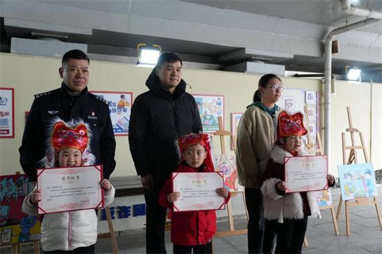 “这幅画讲的是不能随意点击陌生红包链接,不然很容易被骗走钱。”小作者向大家介绍。小朋友们在活动上举办的反诈童“画”展,用稚嫩画笔展示了孩童视角对防诈的理解。