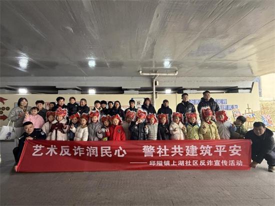 1月29日上午,浙江省宁波市公安局鄞州区分局邱隘派出所与上湖社区、幼儿园通过“艺术+案例+互动”的创新形式,联合开展了“新春筑平安,反诈入万家”社区宣传活动。民辅警与社区居民齐聚在上湖城桥下空间的小广场内,于反诈艺术宣传墙前进行了多种多样的互动。