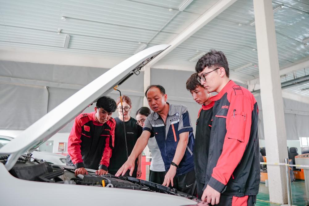 2025年6月27日,在新疆和田技师学院,援疆教师李宝(中)和当地教师一同指导学生维修汽车。该校是北京市对口援疆帮扶单位之一,2020年以来,北京市向该校派出3批次累计30人次的援疆教师队伍,他们在参与学校管理、承担教学任务的基础上,还主动开展“传帮带”培养当地教师,积极组织和指导学生参与各类技能竞赛,为当地职业技术教育高质量发展贡献力量。
