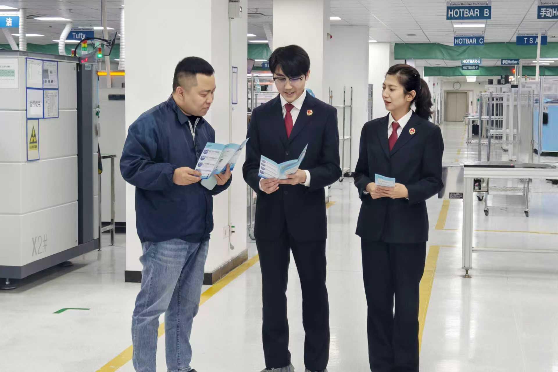 近日,江苏省南京市江宁经济技术开发区人民检察院园区检察官走进外资企业开展“送法上门”活动,向企业员工介绍园区检察官工作并推广“江开检企通”微信小程序。